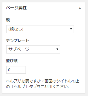 作成画面の右側にあるページ属性で、テンプレート⇒「サブページ」を選びます。